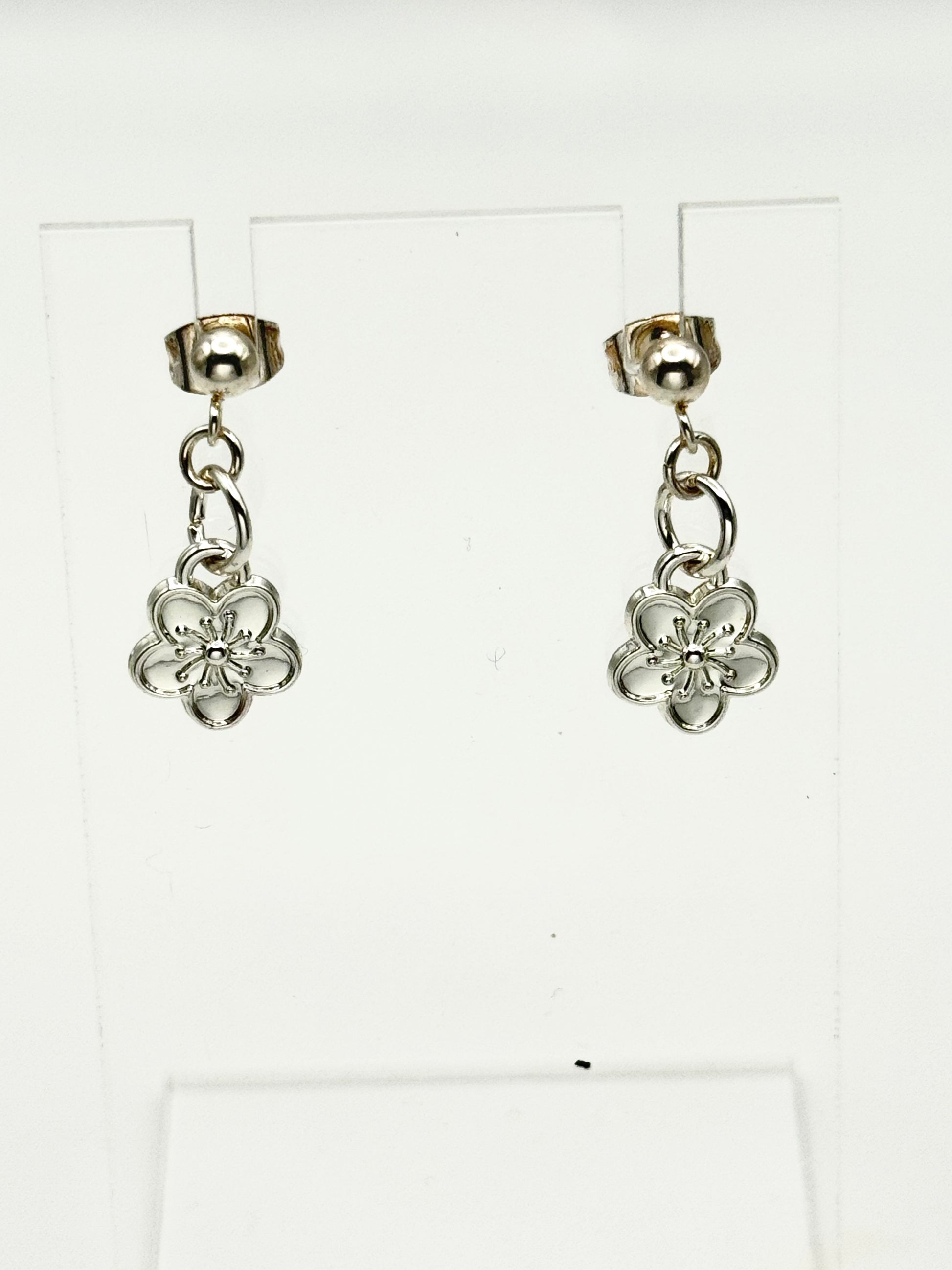 Description: Simple and timeless, these silver floral drops celebrate nature’s elegance. Their clean design makes them versatile enough for everyday wear while still carrying a touch of sophistication