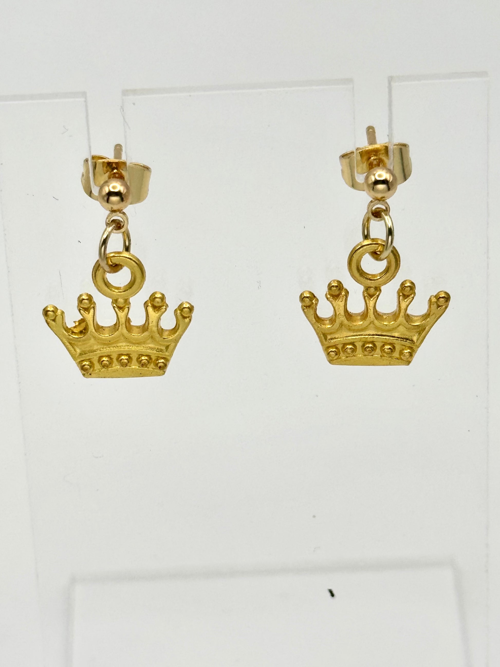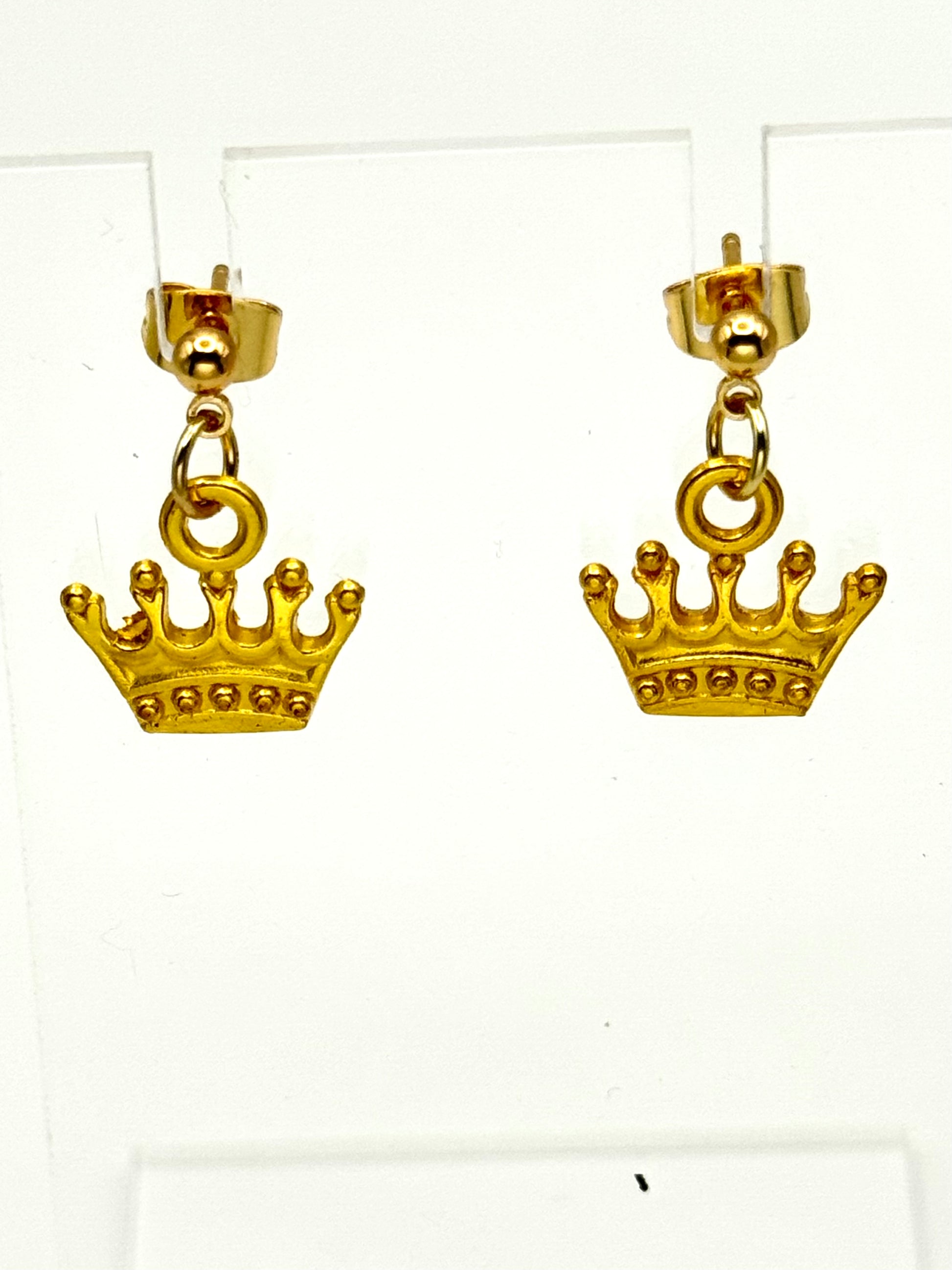 Description: Golden crowns dangle gracefully, adding a touch of regality to any look. Perfect for those who love to stand tall, shine bright, and embrace their inner queen.