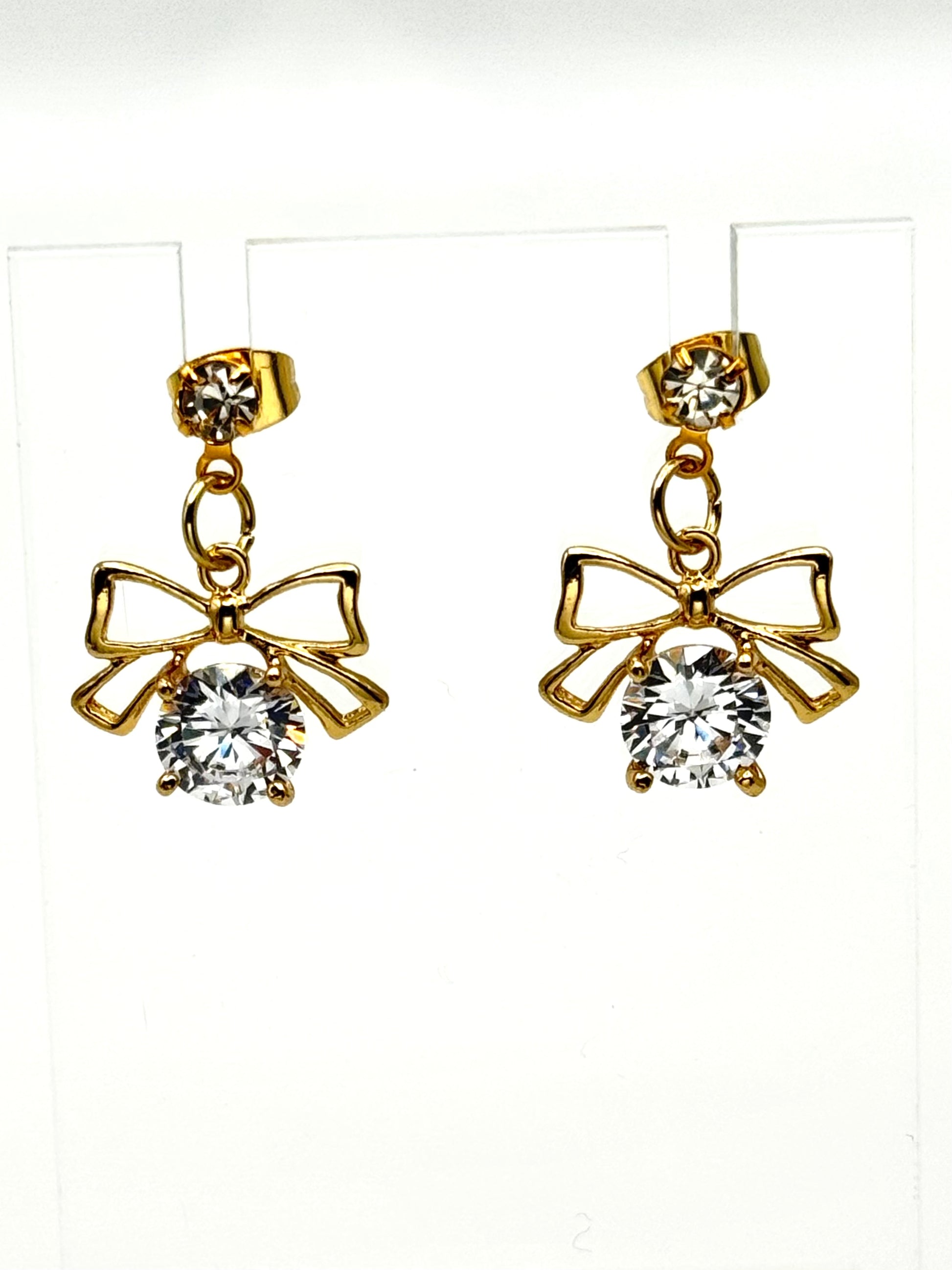 Description: Golden bows are accented with dazzling crystals, creating a glamorous design that shines with sophistication. A perfect statement piece for parties, celebrations, or simply elevating your everyday look.