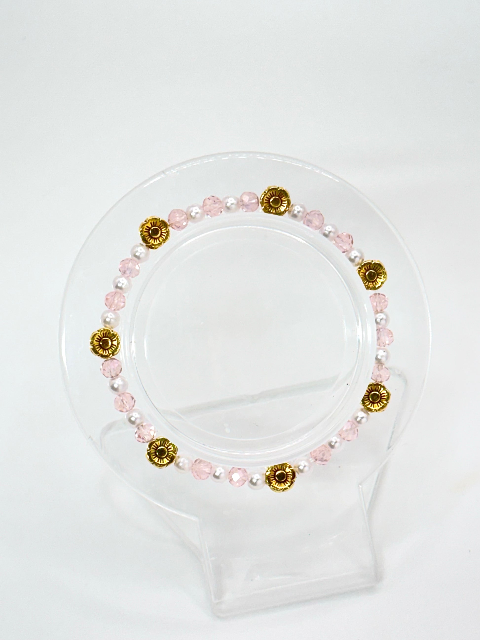 Inspiration: A celebration of beauty and growth, this bracelet intertwines White Jade beads and soft pink crystals with intricate alloy poppy flower spacers. The golden blossoms honor resilience and remembrance, while the soft hues bring warmth and tenderness. A meaningful design that embodies blooming even through life’s challenges.