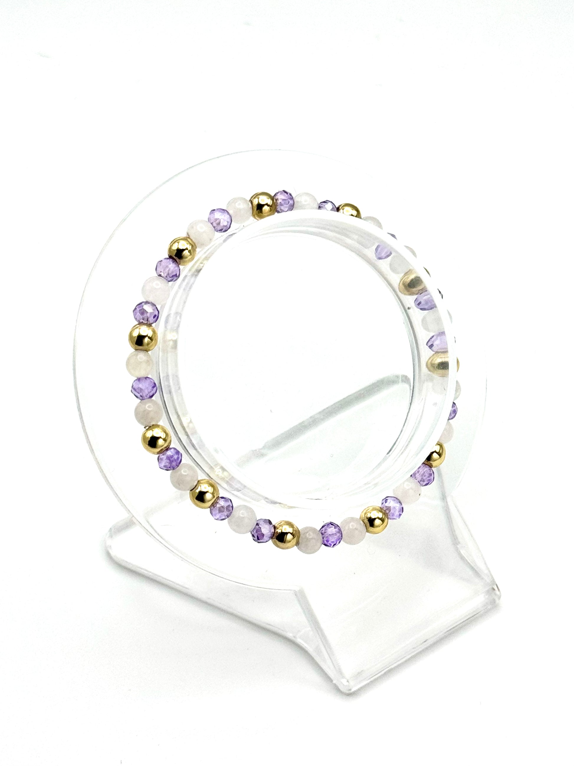 - Material: Gold Plated Spacer, White Jade, and High Quality Pink, Purple, or Blue Crystal beads.