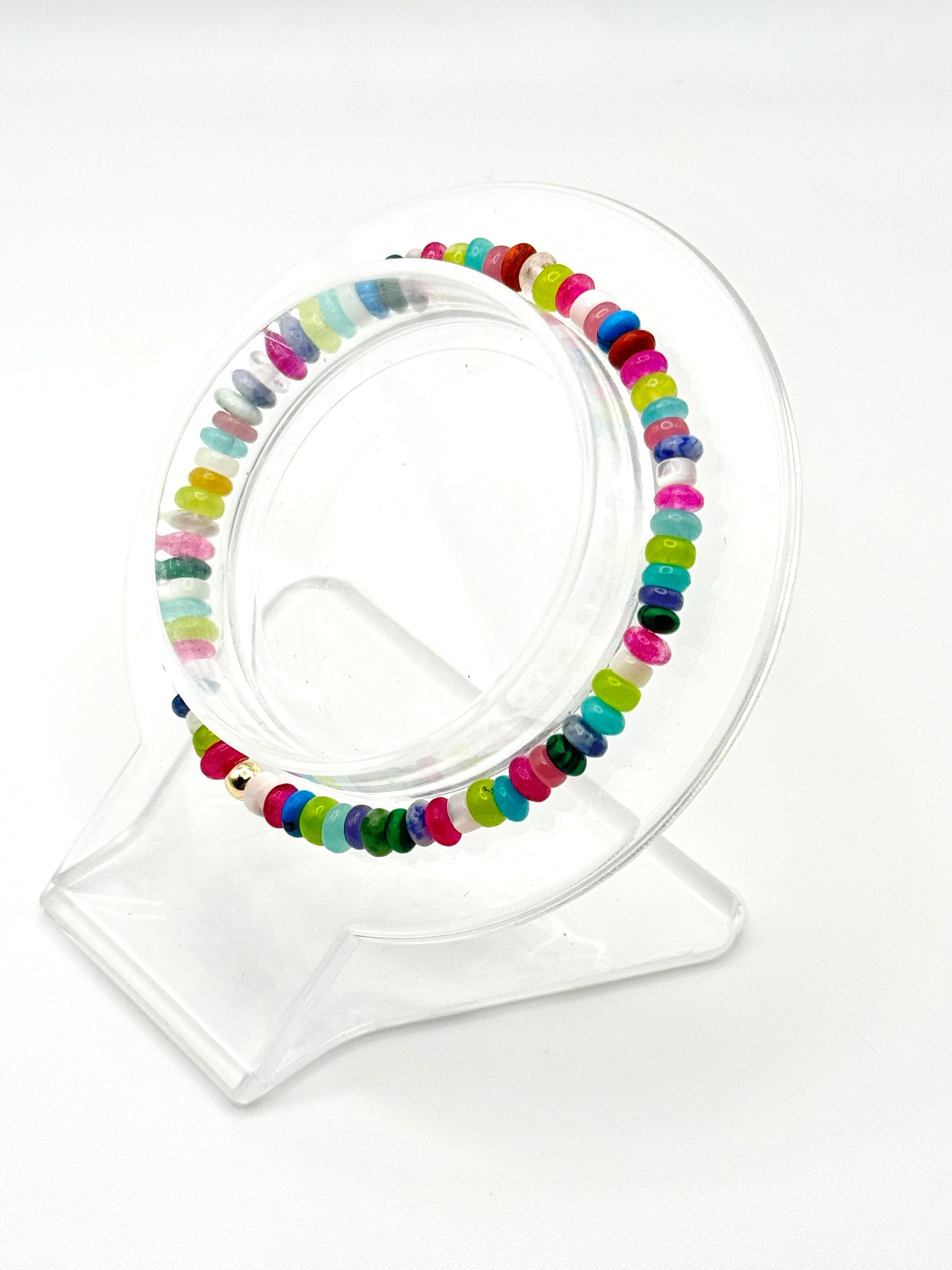 Description: A celebration of vibrance and healing, the Colorful Clarity Bracelet is handcrafted with a radiant blend of colorful stones—each one unique, just like your journey. Soft mother of pearl spacers bring a sense of calm and reflection between the bursts of color, offering harmony and intention with every wear. Whether stacked or worn solo, this bracelet is your daily reminder to embrace every shade of life. Finished with a single 18k gold bead for a touch of warmth and elegance.