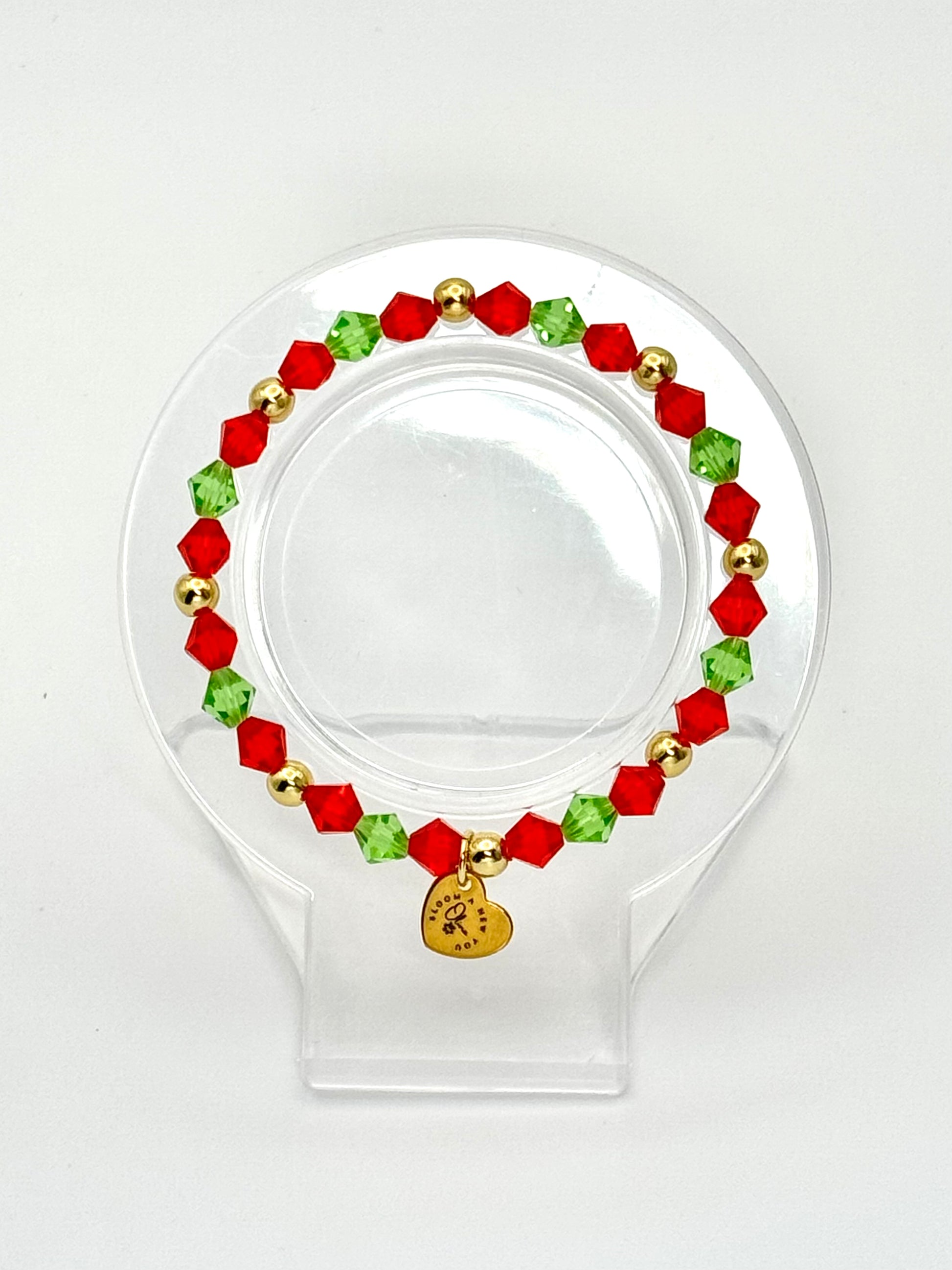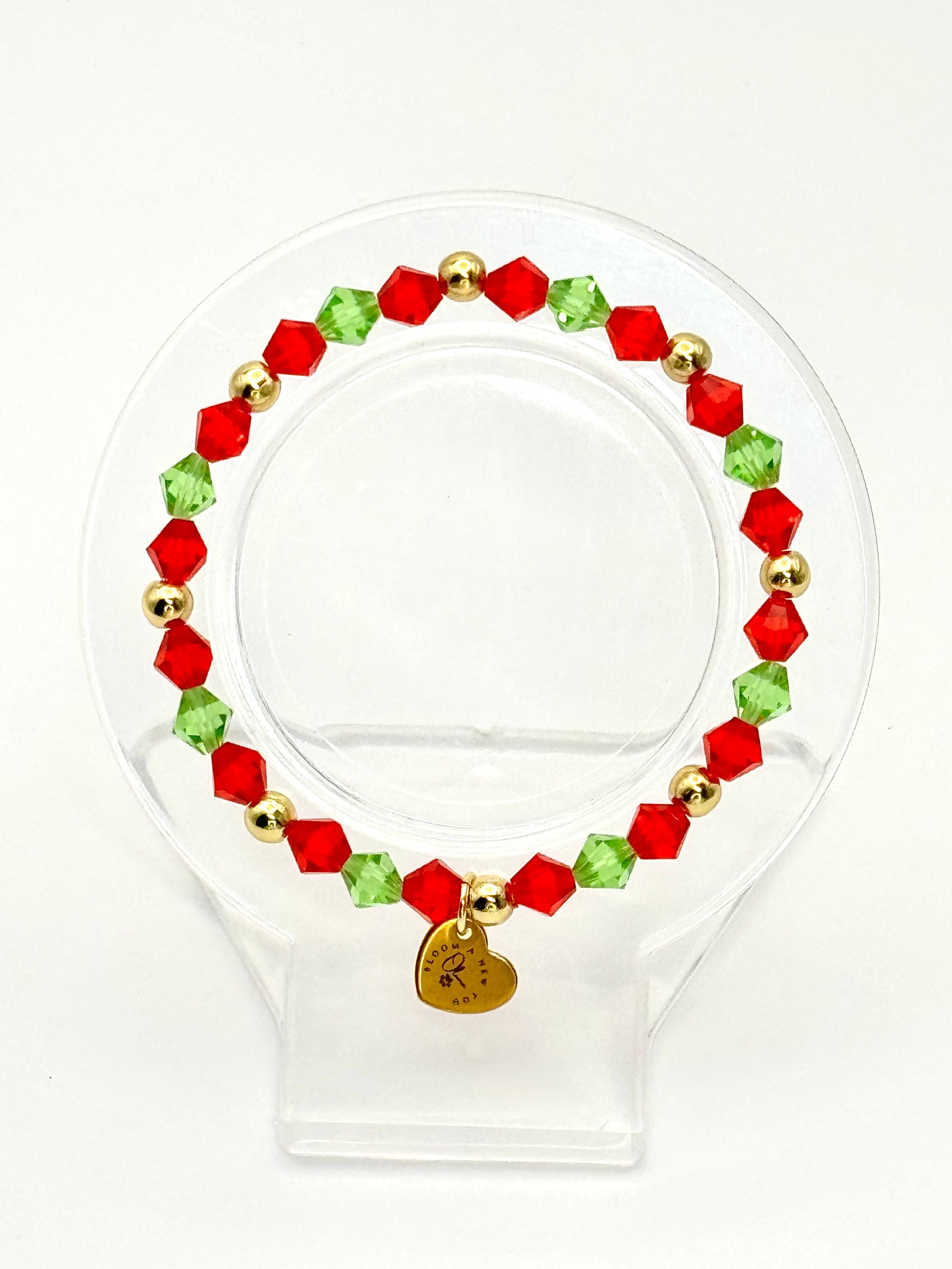 A joyful mix of red and green Swarovski crystals paired with 14k gold gold beads, this bracelet celebrates Olivia’s playful spirit and the love she continues to share, reminiscent of cherished holiday memories she created and the comfort she brought to Remy whenever she needed help getting into the holiday spirit. The gold heart charm ties back to Olivia’s lasting impact and the enduring warmth