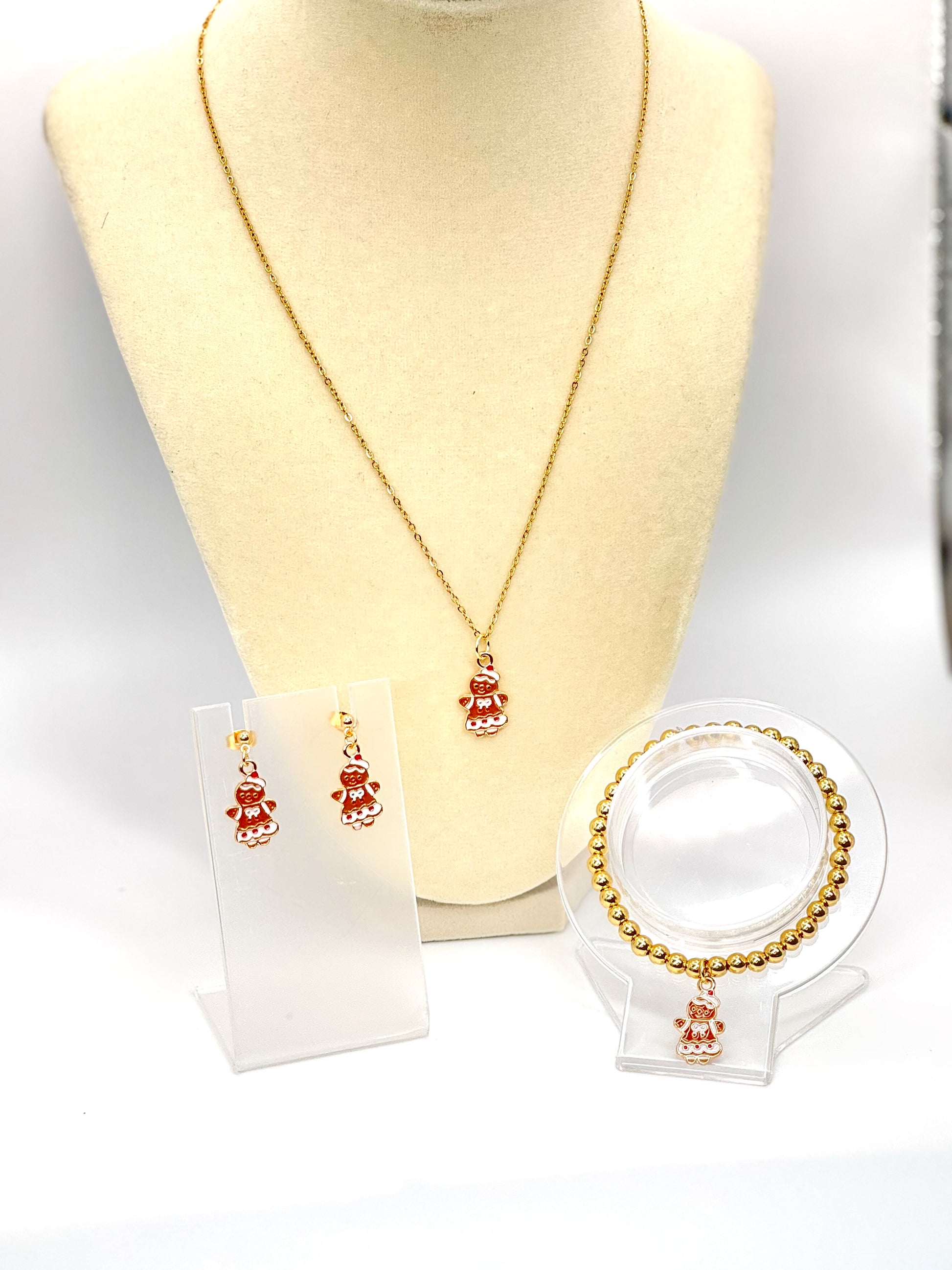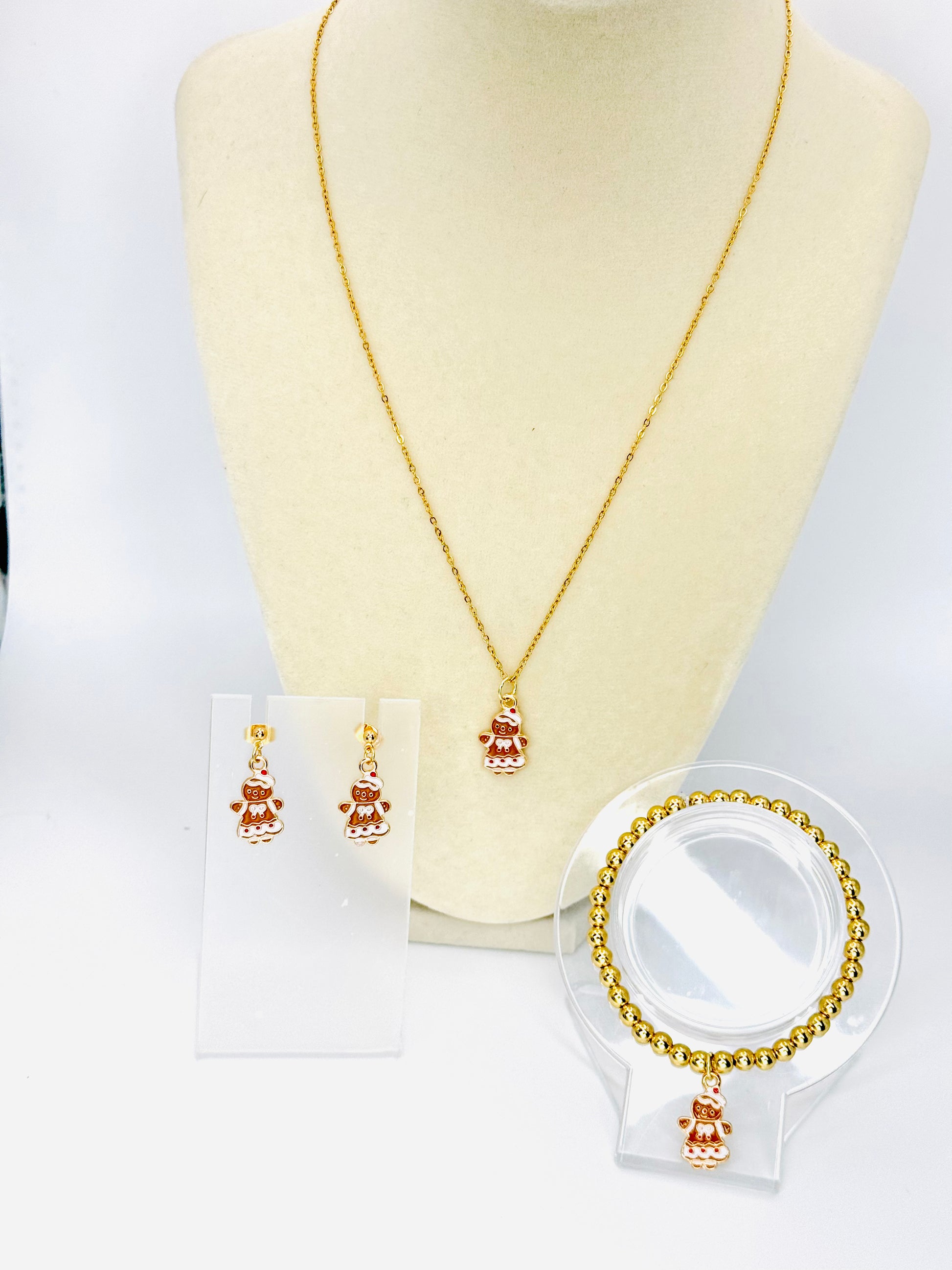 Description: Add a dash of sweetness to your holiday collection with the Gingerbread Joy Set. Each piece in this trio—the necklace, bracelet, and earrings—boasts an adorable gingerbread lady charm in warm, festive tones. Perfect for spreading joy and showcasing your love for holiday traditions.