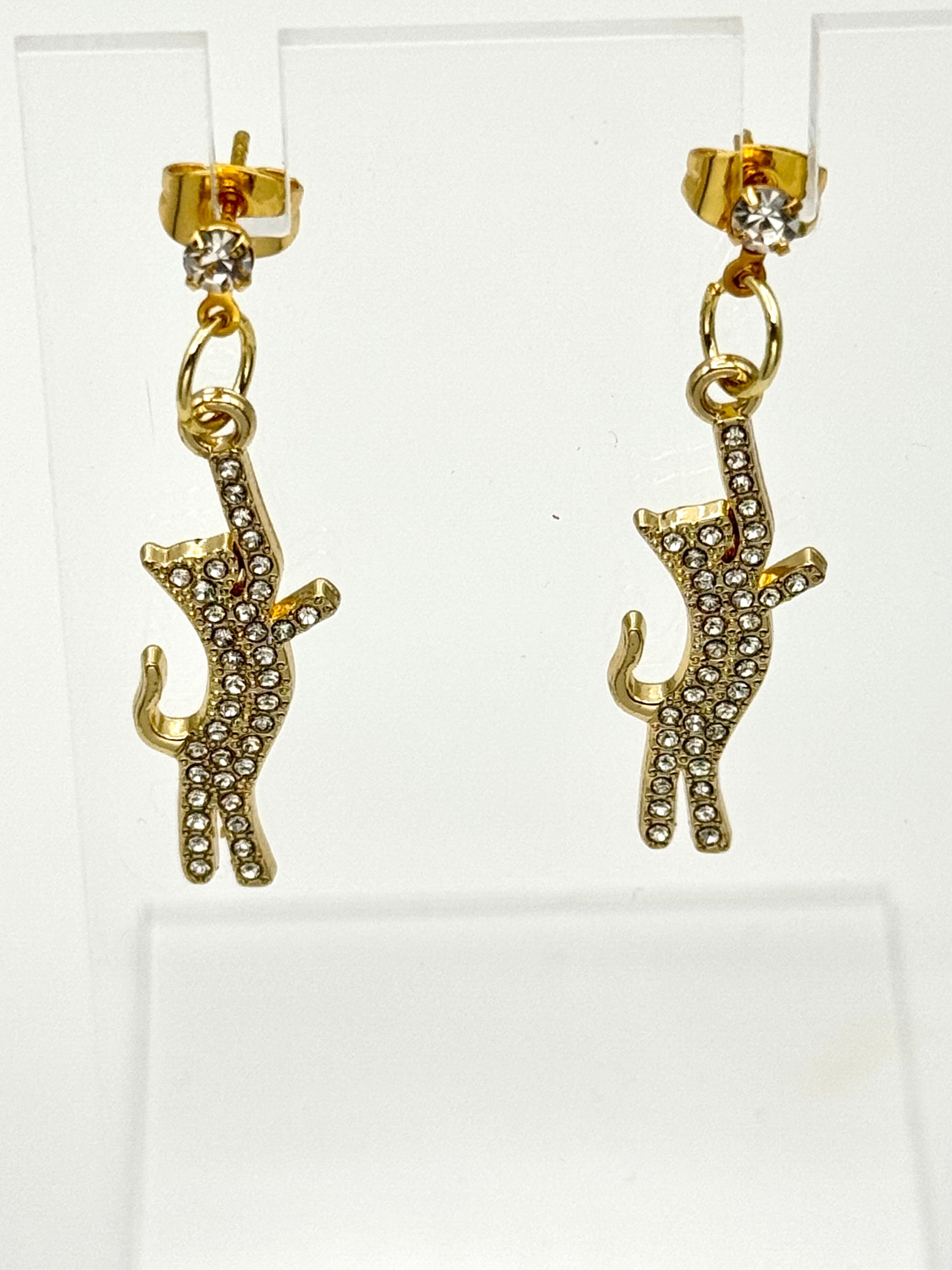 Description: Golden rhinestone cats bring elegance with a playful twist, perfectly capturing the spirit of our feline companions. These earrings are a meaningful reminder of the comfort and personality cats bring to our lives—ideal for everyday wear or gifting to a cat lover.