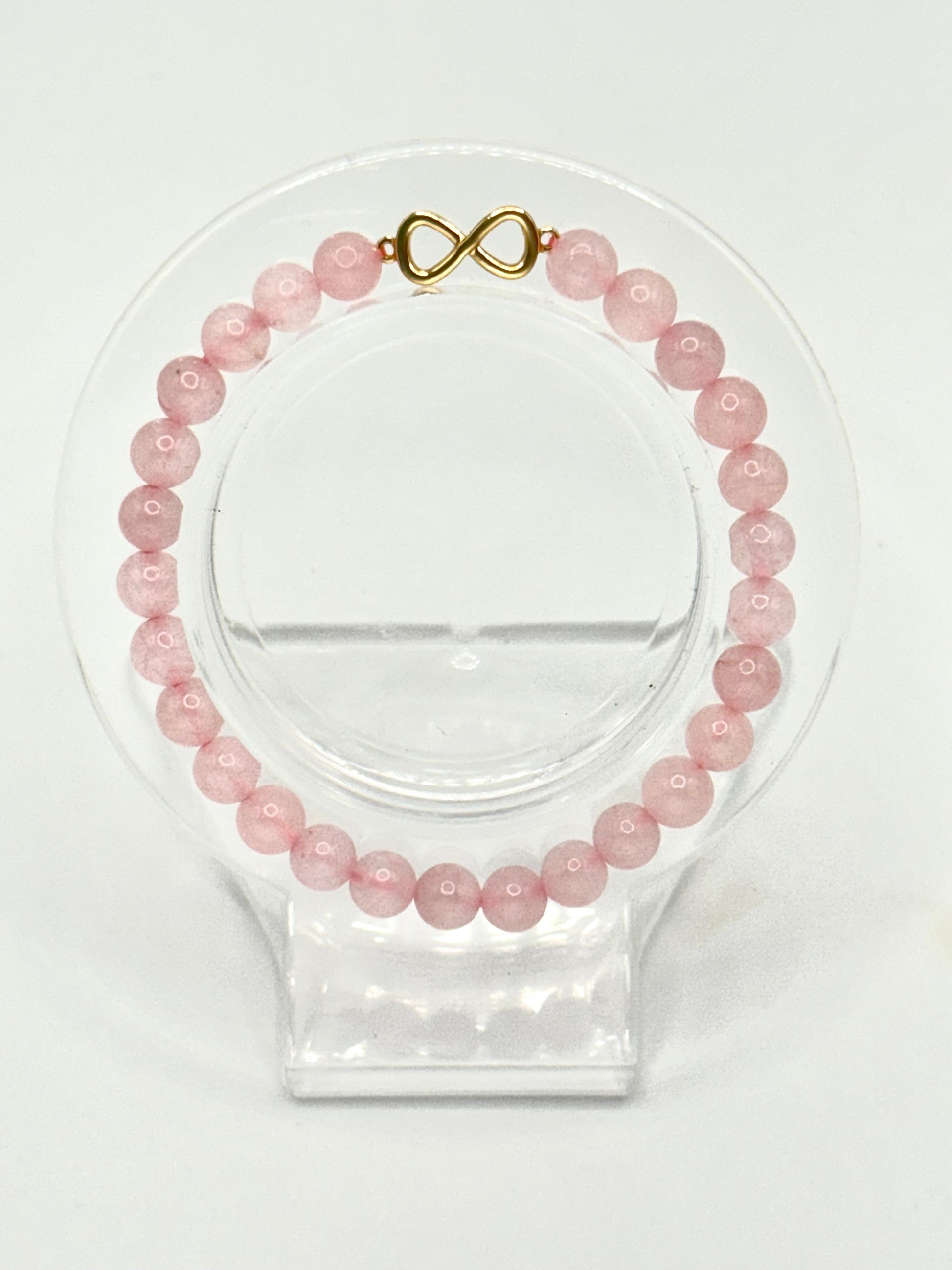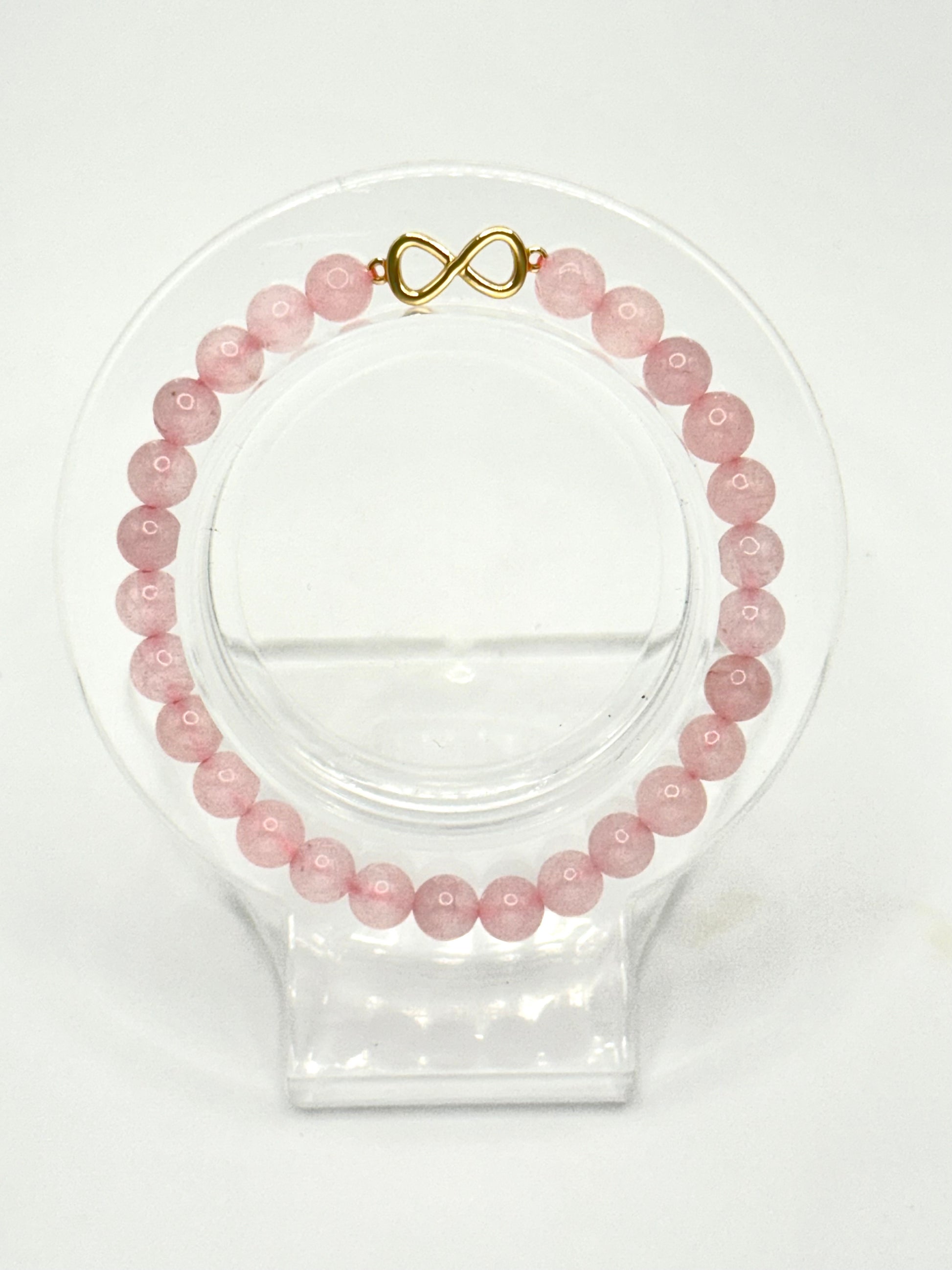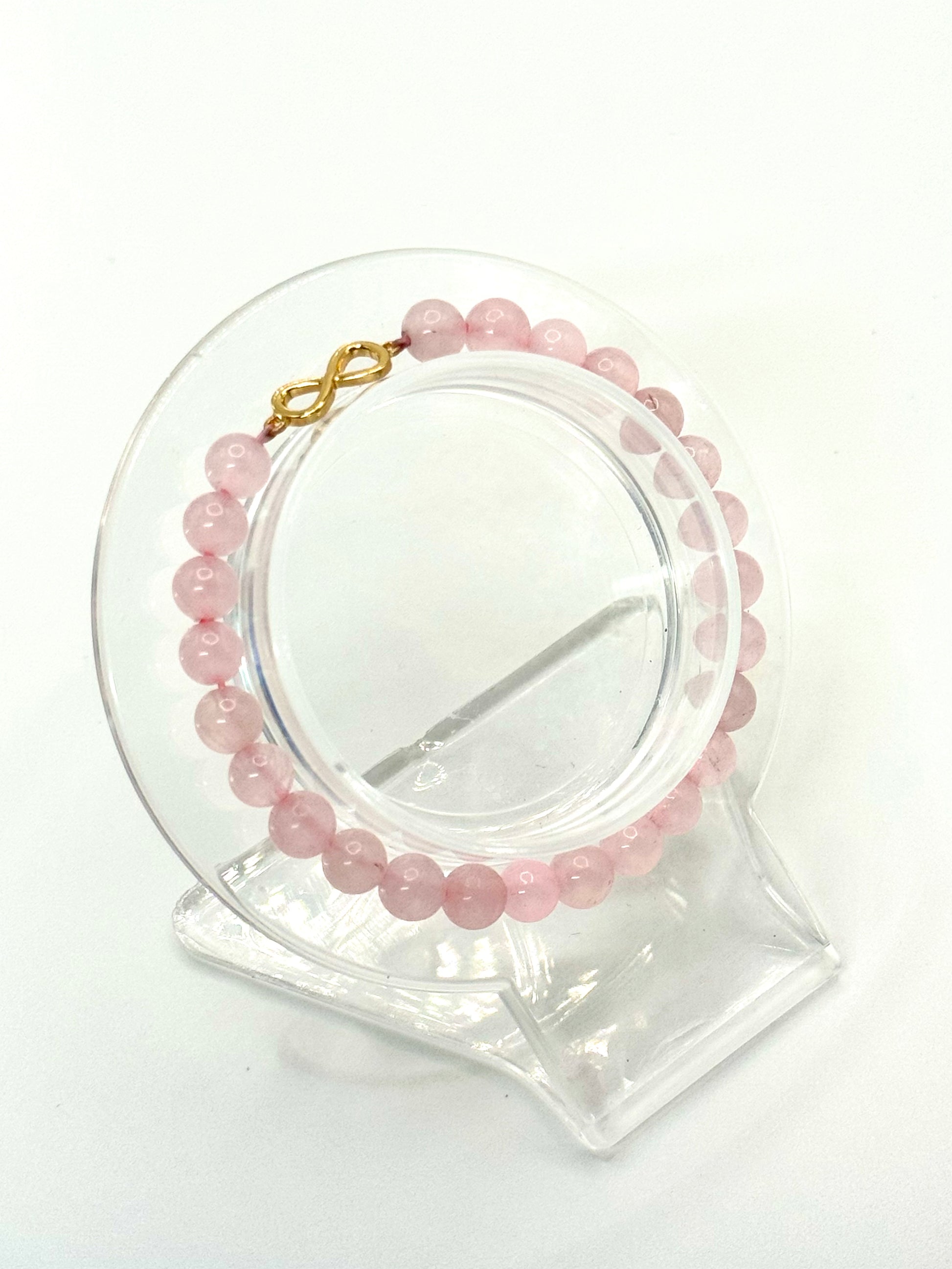 Inspiration: Soft rose quartz beads—symbols of love, compassion, and healing—circle a gold infinity charm, representing connection that knows no end. Created for our first anniversary collection, Heart of Infinity honors the bonds that continue to grow through every season of life. Whether worn alone or stacked, it’s a gentle reminder that when we lead with love, our impact is endless.