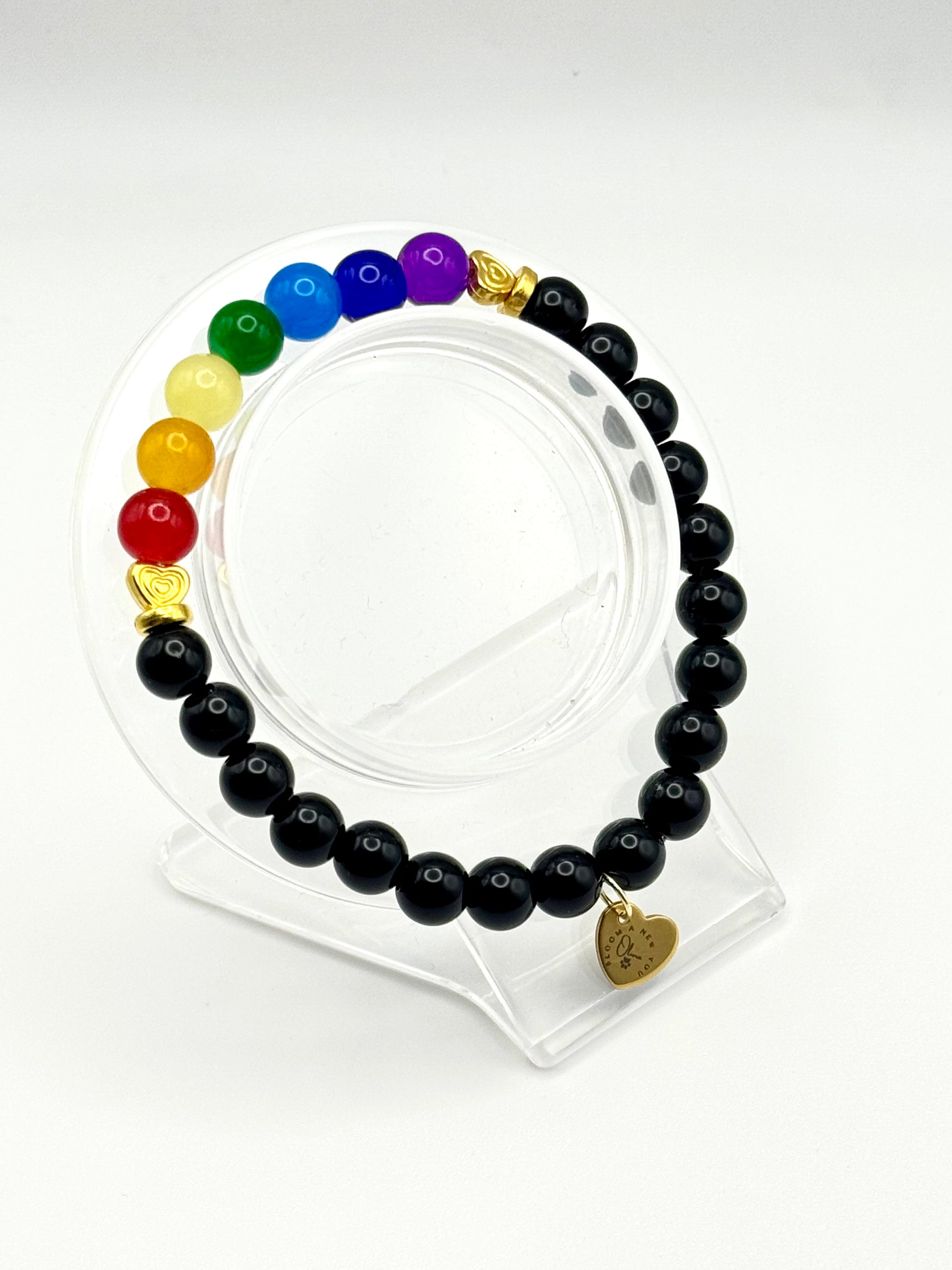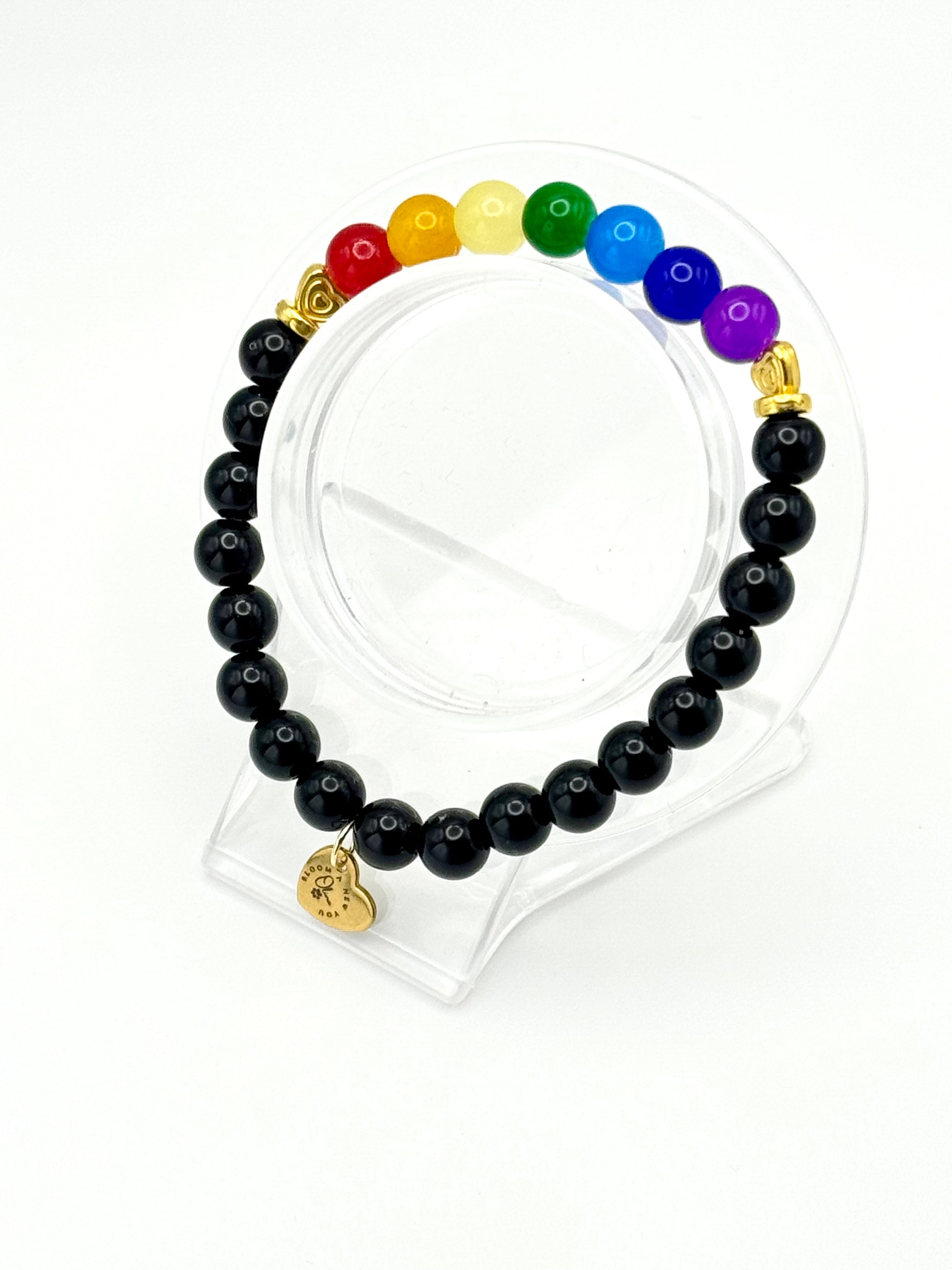 Why blend in when you were born to rainbow? Celebrate love, identity, and authenticity with the Infinite Pride Bracelet. Hand-strung with a spectrum of vibrant beads, this piece honors the beauty of being exactly who you are. The rainbow starts and ends with gold beads symbolizing endless love, boundless self-expression, and the everlasting strength found in community. Whether you wear it as a quiet reminder or a bold statement, this bracelet reflects the power of living proudly and loving freely.Â