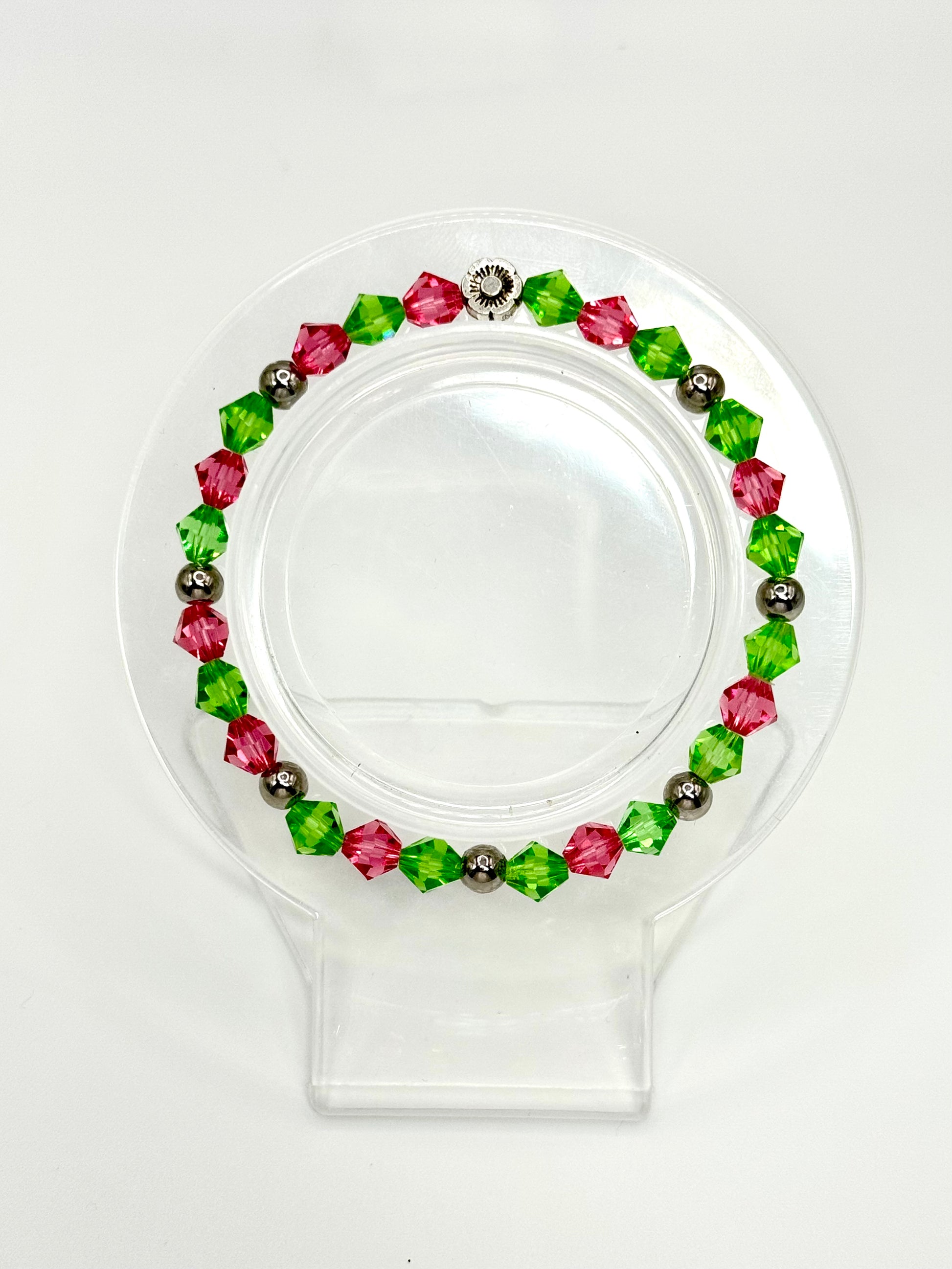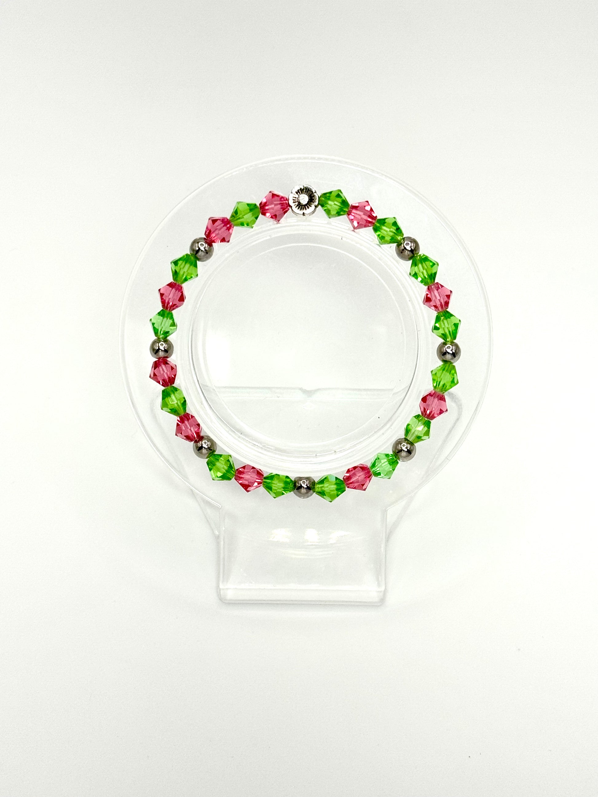 Description: With alternating pink and green crystals, No One Mourns the Wicked is a bold fusion of Glinda’s effervescent charm and Elphaba’s unapologetic strength. This bracelet is for those who see themselves in both characters—duality and all. It’s for the person who’s had to navigate how they’re perceived while staying true to who they are.