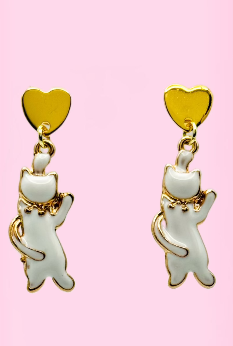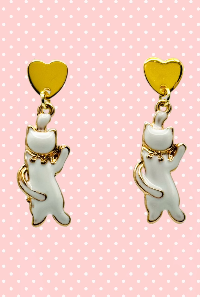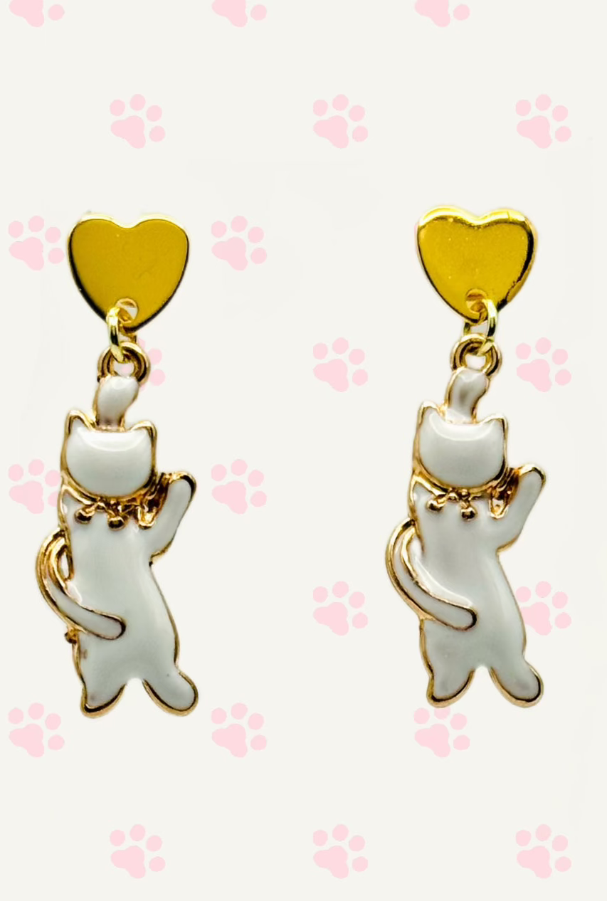 For the elegant feline fanatic, these white cat earrings are a must-have! Their sleek design captures the poise and grace of your purring companion, while the golden heart post adds a touch of sophistication. Made from stainless steel, they’re not only stunning but durable—just like your love for your cat. Add these to your collection, and you’ll have everyone meowing with envy!