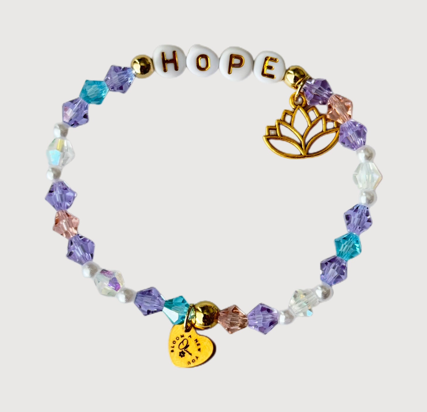 At its heart, the word HOPE anchors this piece—because that’s where every seed begins. A golden lotus charm symbolizes growth through adversity, and your Bloom A New You tag is a quiet promise that you’re never alone on this journey. Whether it’s worn during treatment, held during hard news, or gifted to someone you love—this bracelet offers more than beauty. It offers belief.