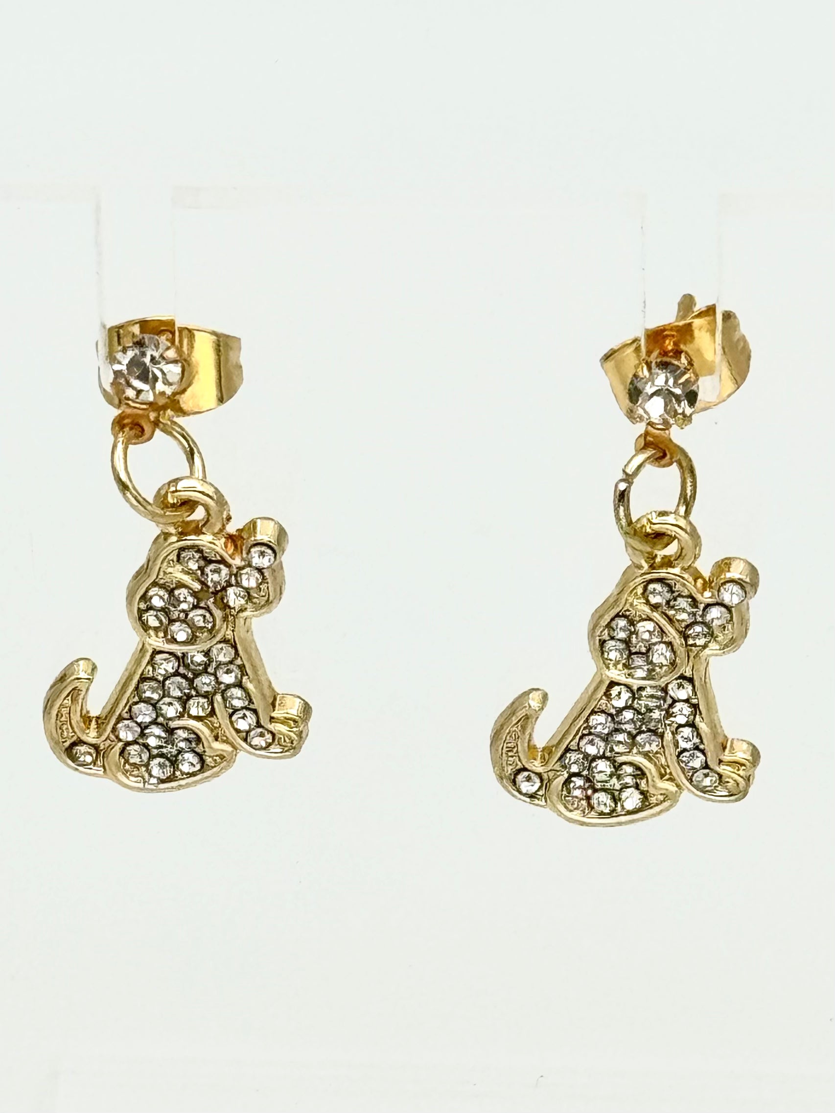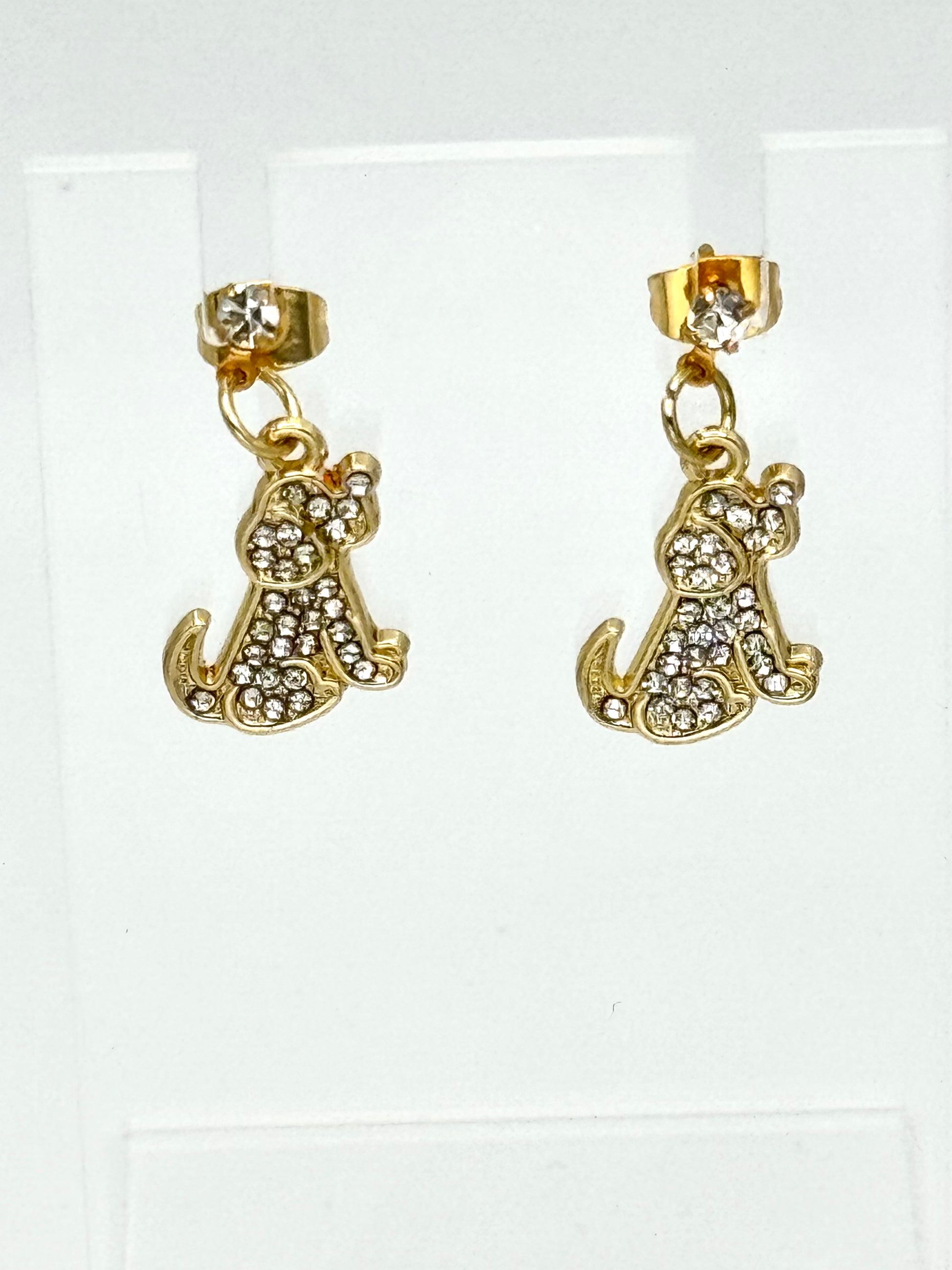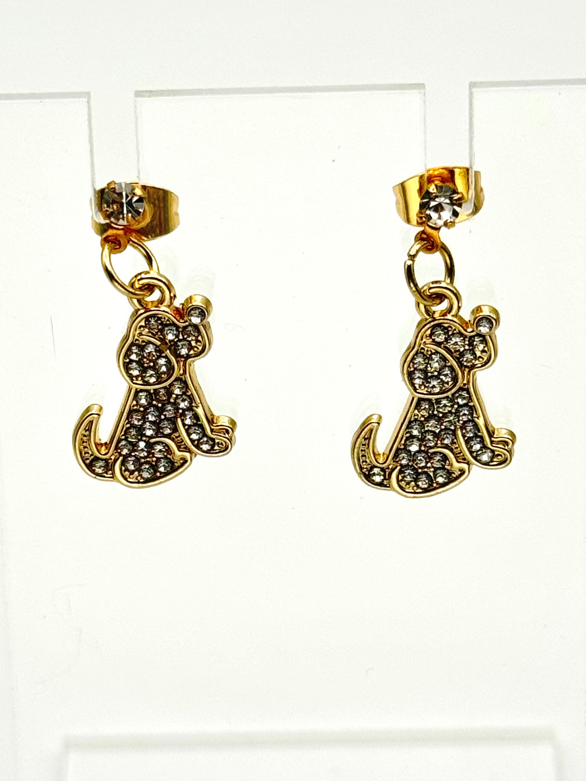 Description: Playful pups shimmer with rhinestone sparkle, capturing the joy and loyalty of our four-legged friends. These golden earrings are whimsical yet elegant, making them the perfect accessory for dog lovers who want to showcase their love in style.
